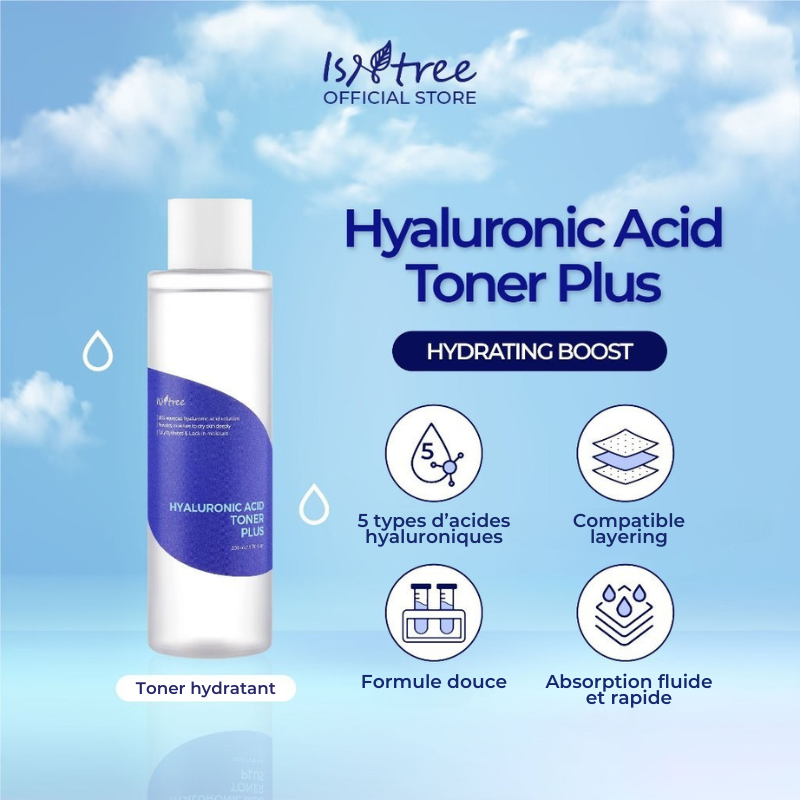 Le Isntree Hyaluronic Acid Toner est un tonique ultra-hydratant formulé avec 5 types d’acide hyaluronique et un complexe végétal apaisant MultiEx BSASM. Il restaure intensément l’hydratation, calme les peaux sensibles et renforce la barrière cutanée.
