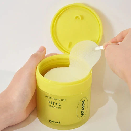 Après le nettoyage, prélevez une compresse du Goodal Green Tangerine Vita C Toner Pad+ à l’aide de la pince fournie. Passez-la délicatement sur le visage, en évitant le contour des yeux et des lèvres. Poursuivez avec votre sérum ou votre crème hydratante.