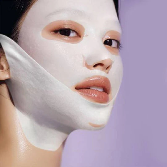 Placez d’abord la partie supérieure du masque sur votre visage en lissant bien pour qu’elle adhère. Ensuite, appliquez la partie inférieure sous le menton et tirez doucement vers les côtés pour qu’elle se positionne correctement.