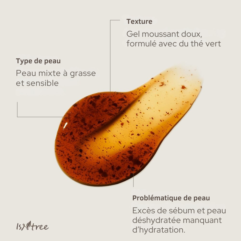 Eau, glycérine, alaninate de cocoyl de sodium, cocoamphodiacétate de disodium, butylène glycol, méthyl cocoyl taurate de sodium, 1,2-hexanediol, lauryl hydroxysultaïne, gomme de xanthane, chlorure de sodium, caprylyl glycol, acrylates/polymère croisé d'acrylate d'alkyle C10-30, poudre de feuille de Camellia Sinensis, feuille de Camellia Sinensis, extrait de feuille de Camellia Sinensis, phytate de sodium, extrait de malt, hexylène glycol, extrait de fleur d'Oenothera Biennis (onagre), extrait de feuille de Pinus Palustris, extrait de racine de Pueraria Thunbergiana, extrait de racine d'Ulmus Davidiana, éthylhexylglycérine, glycosaminoglycanes hydrolysés, propanediol, polymère croisé d'hyaluronate de sodium, hyaluronate de sodium, benzylglycol, acide hyaluronique hydrolysé, acide hyaluronique.